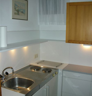 Die Wohnung besteht aus einer großen Wohnstube, einer seperaten Küche, einem Schlafzimmer und einem Bad. In der Wohnstube befindet eine gemütliche Sitzecke mit zwei Schlafsofas, eine Leseecke mit Notbett, ein Esstisch sowie ein verkachelter Holzofen. Der Schlafraum enthält ein Doppelbett. Alle Räume werden elektrisch beheizt, das Bad mit Liegewanne, Bidet, WC und Waschbecken hat zusätzliche Bodenheizung. SAT-TV ist vorhanden.
